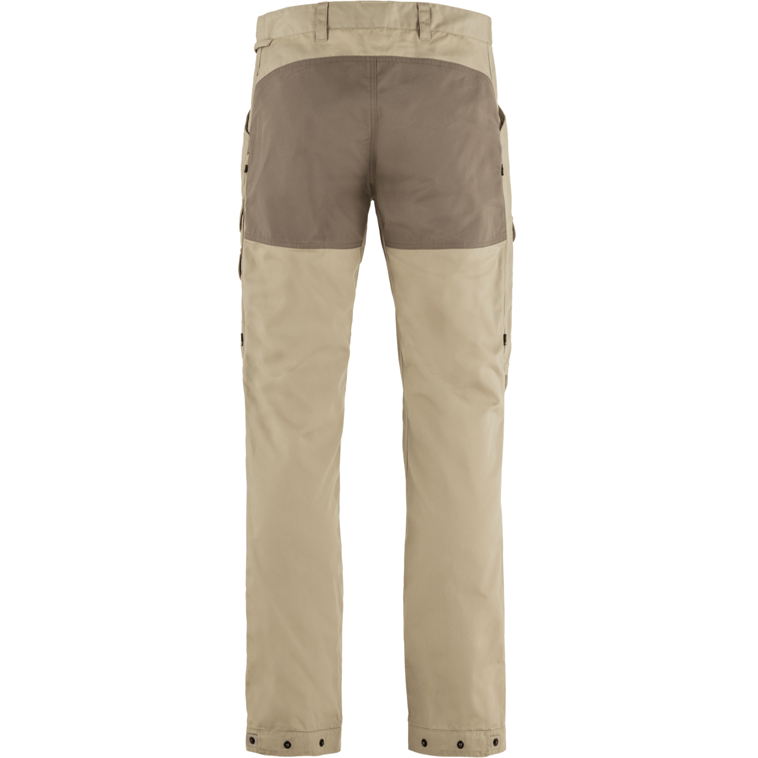 Durable trekking trousers with technical features, made from wind- and water-resistant G-1000. The model is based on our best-selling Vidda Pro but has improved ventilation options and a slimmer fit with stretch fabric in crotch so still has great freedom of movement . The buttoned strap adjustments at the leg endings can be removed and there are numerous practical pockets and details - such as a knife pocket on the right leg and a loop for an axe on the side of the waist.